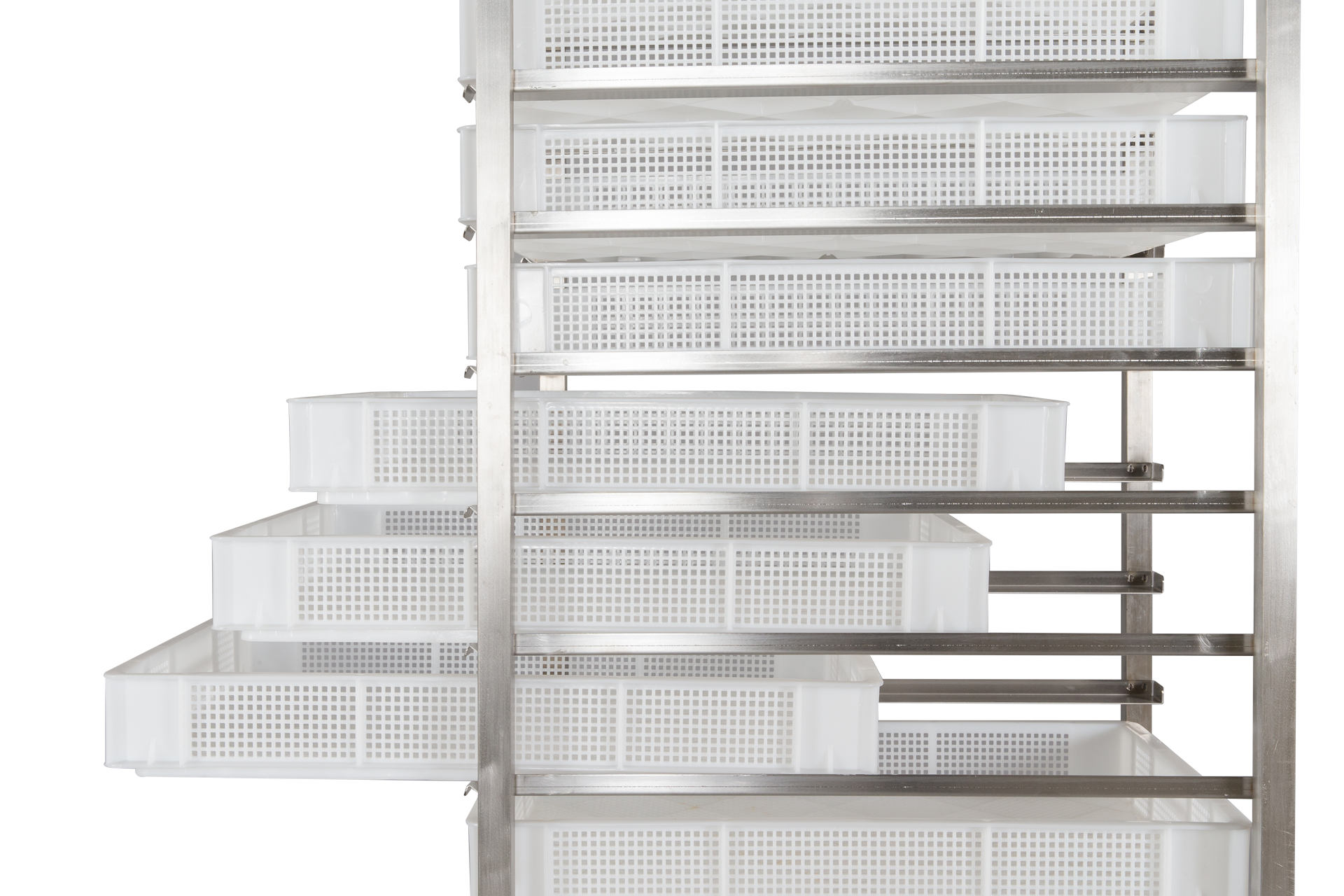 Eine platzsparende und optimale Trocknungsmöglichkeit für eine größere Menge Nudeln. Es wurde darauf geachtet, dass der Abstand zwischen den Horden ausreichend ist und Luft zum Abtransport der Feuchtigkeit zirkulieren kann.